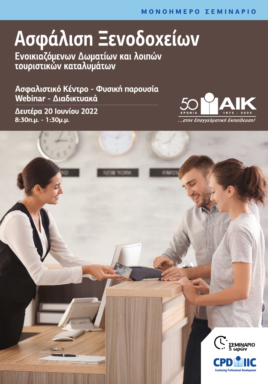 Μονοήμερο Σεμινάριο – Ασφάλιση Ξενοδοχείων Ενοικιαζόμενων Δωματίων και λοιπών τουριστικών καταλυμάτων